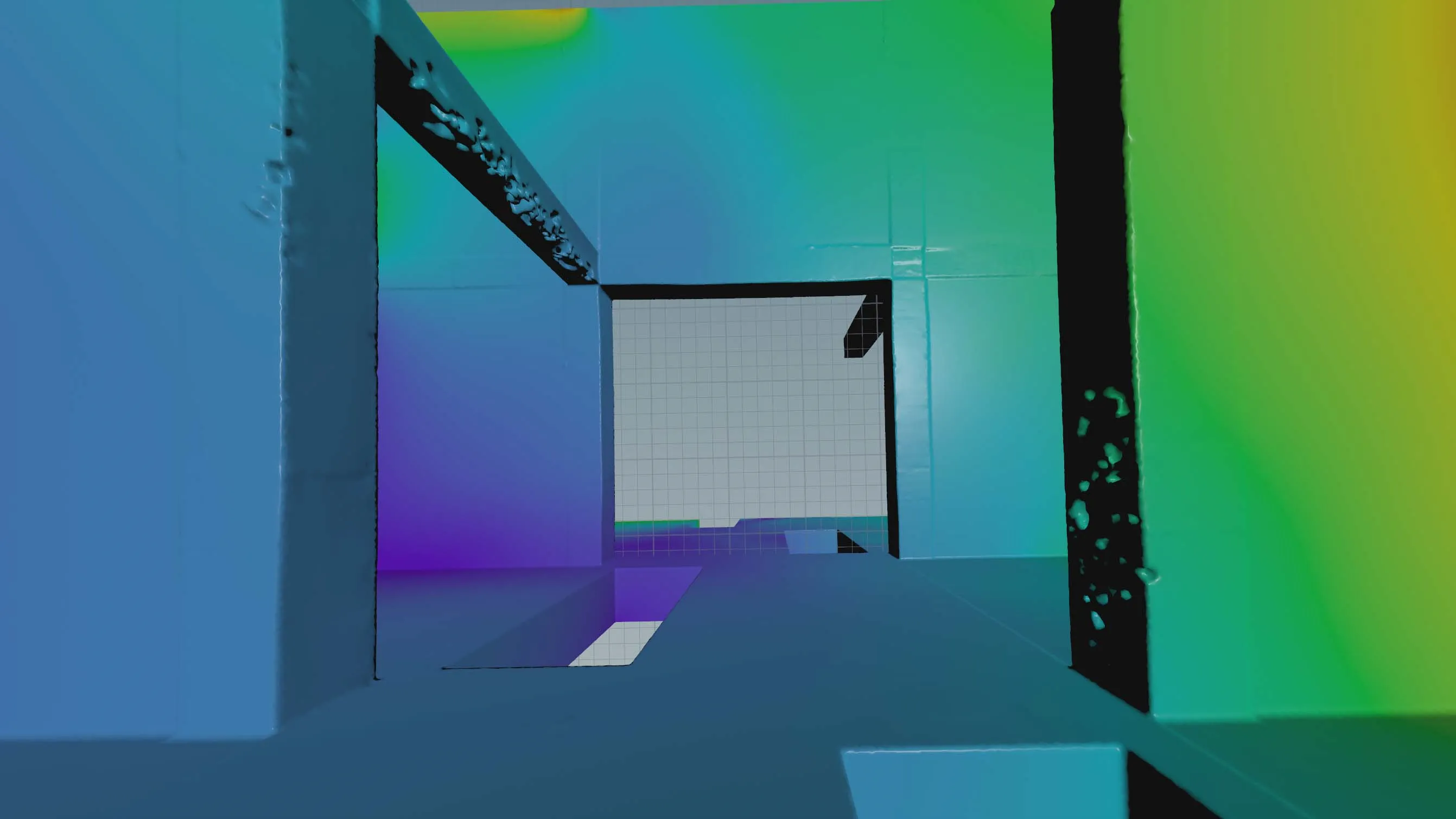 The results from Disco Diffusion inspired me to damage the whole building. Using classic modeling methods would have been difficult and time-consuming, but in Houdini, I could simply prepare one algorithm for a sample concrete wall and apply it to dozens of remaining concrete objects.
