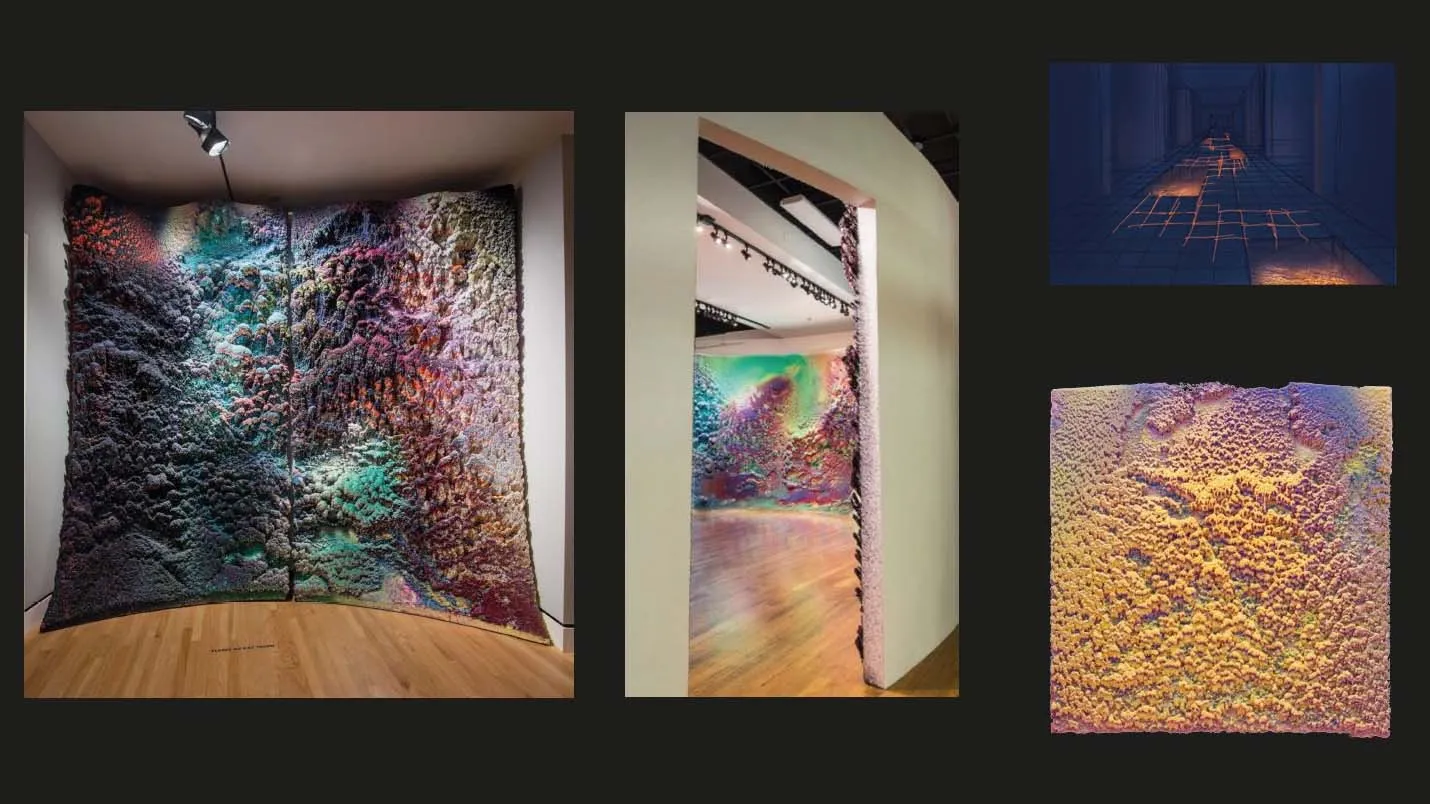 The references suggested a fluorescent, glowing orange-colored mounting foam. As for the movement, I was seeking a mushroom-like growth motion, but it needed to be rapid. Meanwhile, I watched an Entagma tutorial about adaptive subdivision and realized that combining vellum with adaptive subdivision and differential growth based on curvature would achieve the desired biological, fluid movement.
