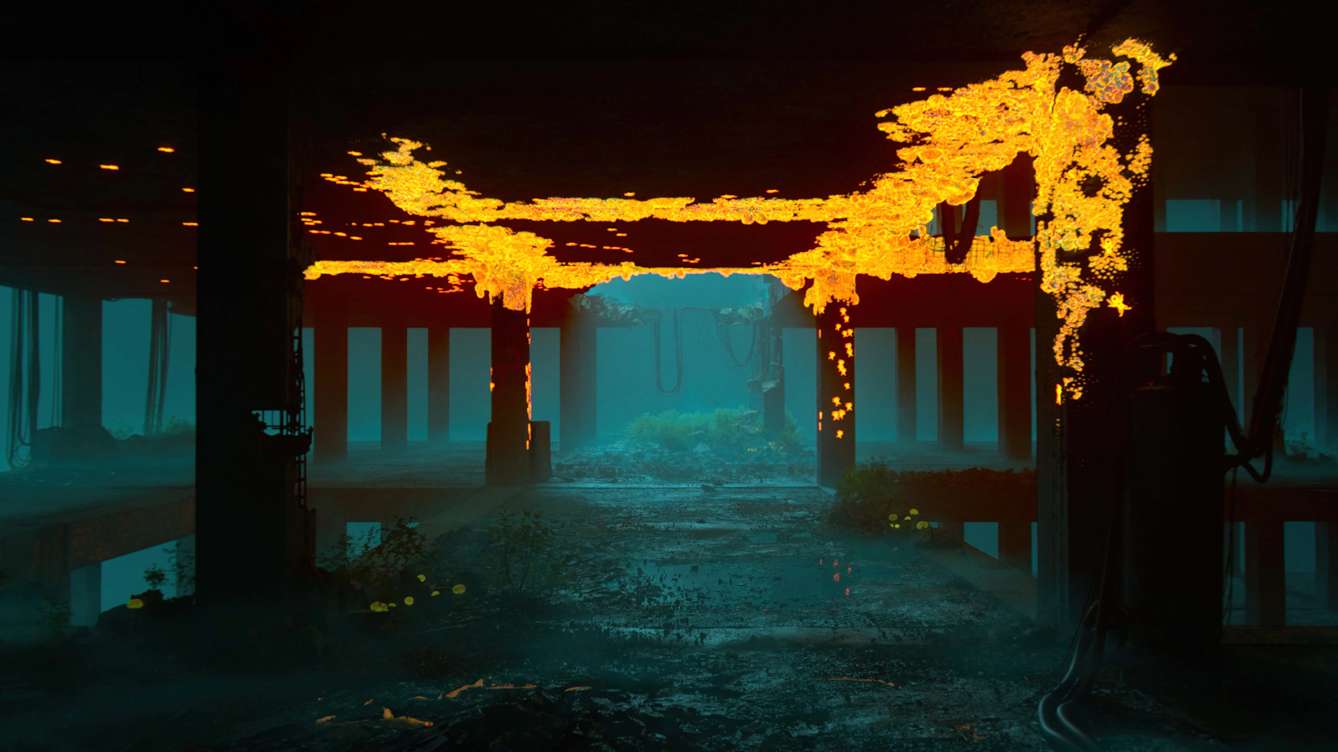 All shots were crafted using Houdini in tandem with the Octane engine, marking my first delightful experience with this powerful duo. I picked Octane because I wanted much of the scene's lighting to come from a moving, uneven source, like the lava mushroom. I knew Octane would be perfect for this job.