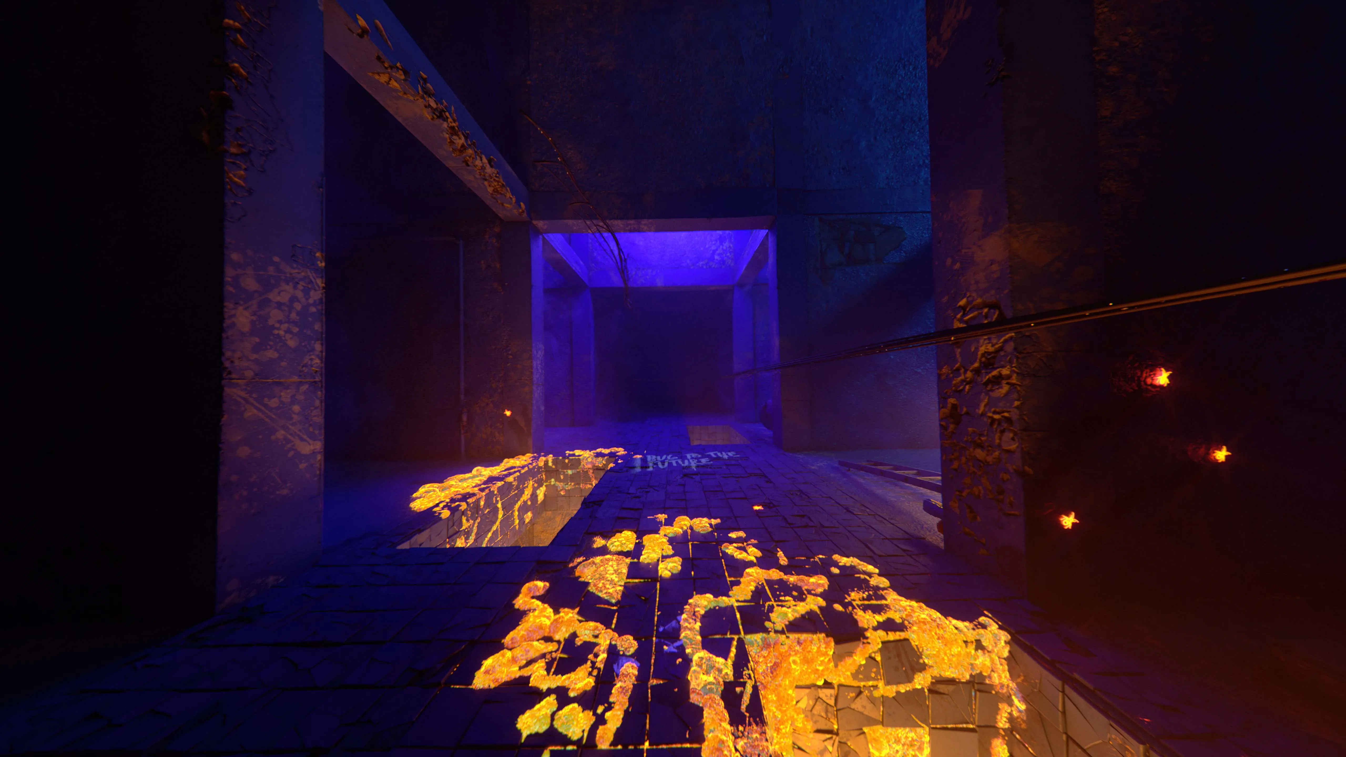 The animation of the primary movements was created by calculating gradient vectors based on the heat attribute transferred from the lava geometry (or hand-painted) and then using them to drive the movement of the bugs. I couldn't use any decal system because Octane for Houdini lacks one, so I simply utilized the Ray SOP to project the bugs geometry onto the closest surface.