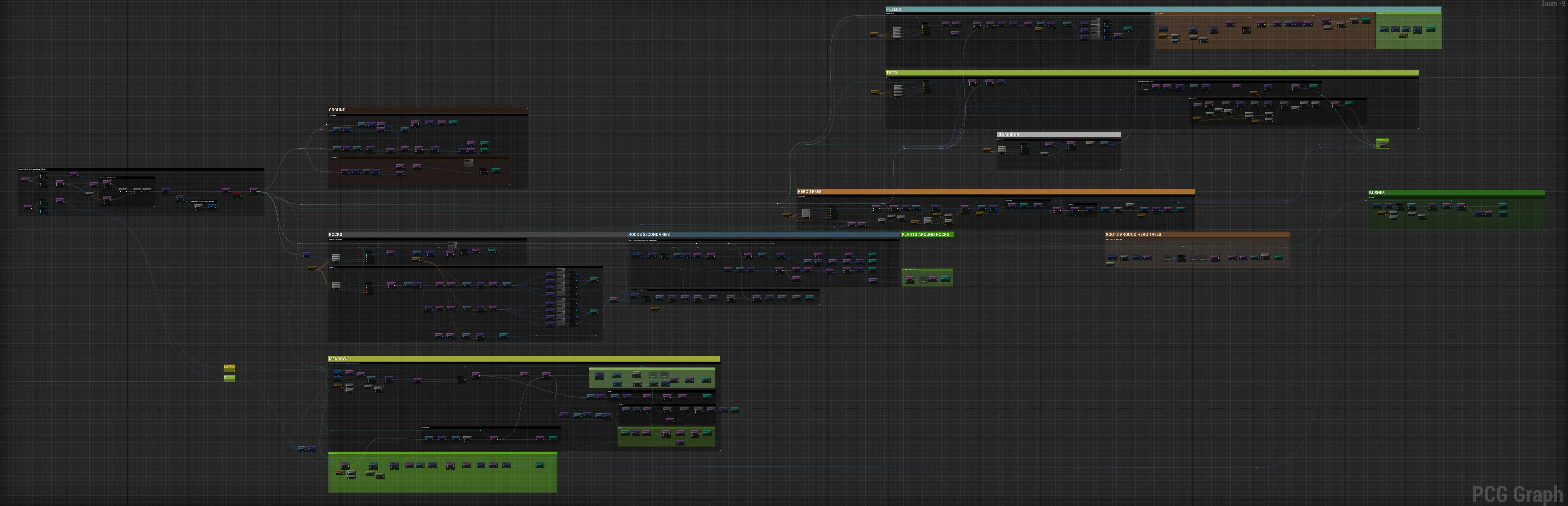 Even for this simple project PCG Graph was pretty large. I tried to make my graph as nice and clean as possible in Unreal.