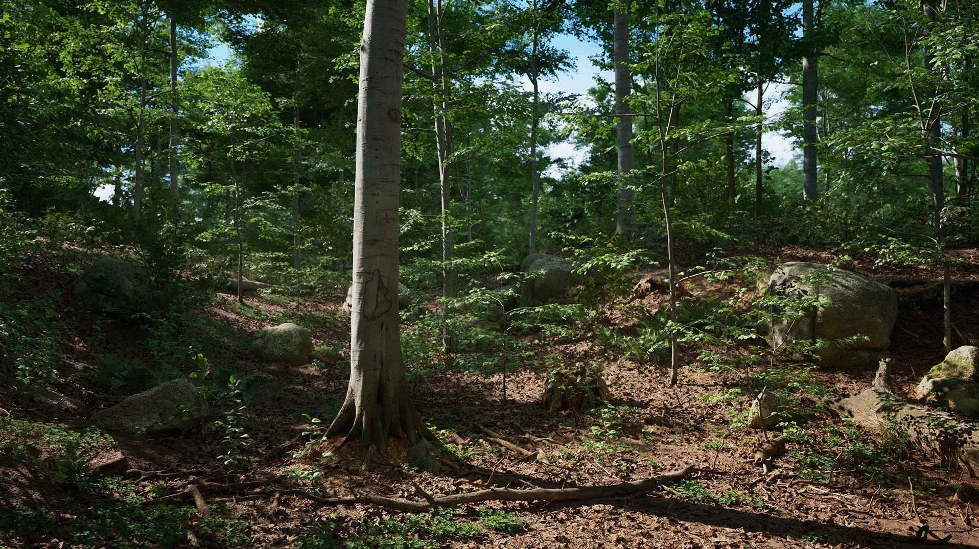 All models and materials are sourced from Quixel Megascans. The trees are from the Megascans Trees: European Beech pack. Everything was created and rendered in Unreal, and Fusion was used for compositing.